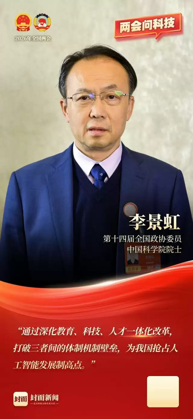 封面新闻记者 张馨心 海报设计 郭可馨委员名片李景虹 全国政协委员,中国科学院院士,清华大学化学系教授。今年全国两会,他关注的重点之一是“深化教育、科技、人才一体改革,促进人工智能高质量发展”。“人