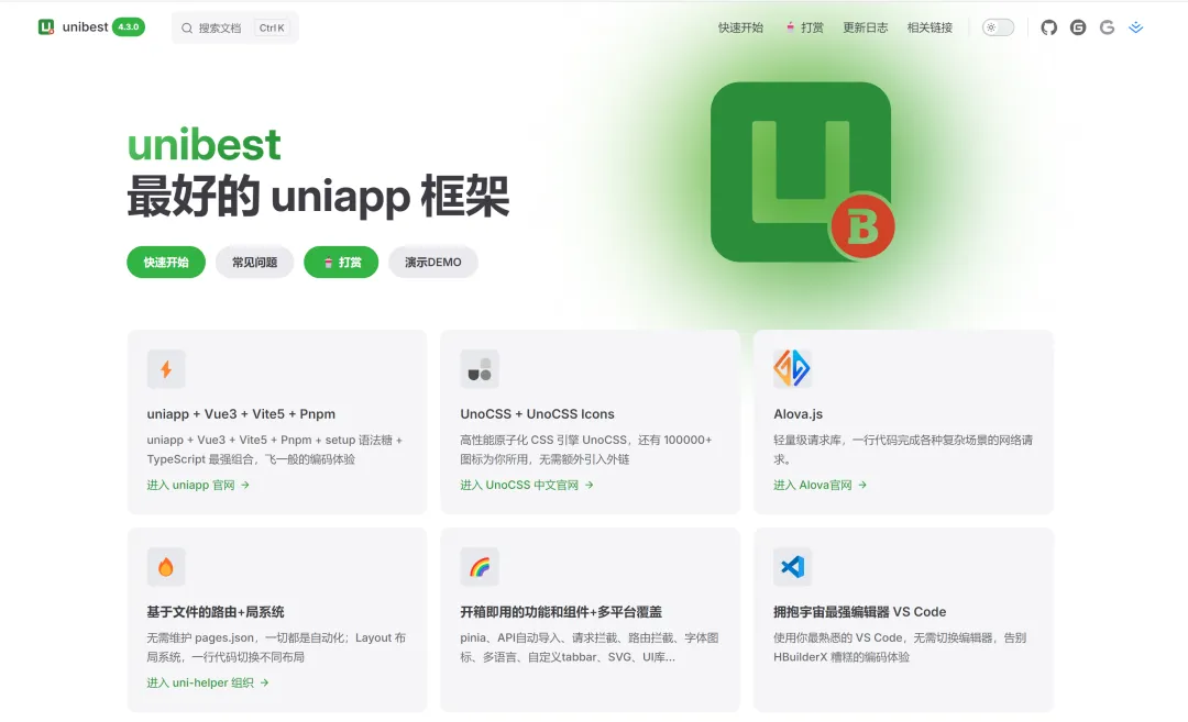 unibest 是一个基于 uni-app 的现代化、企业级工程化开发框架。它主打 Vue3 + TypeScript + Vite5 技术栈,致力于让 uni-app 开发变得更高效、更规范、也更易于长期维护。