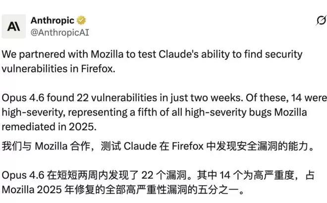 Claude披露火狐浏览器22个漏洞与14项高危风险,安全规则需升级?