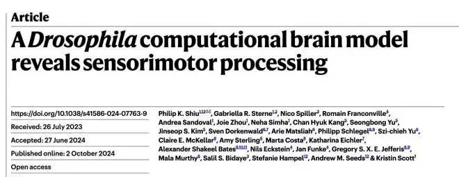 Eon 的首席科学家 Philip Shiu 和他的团队,在《自然》(Nature)上发表了一篇重磅论文《A Drosophila computational brain model reveals sensorimotor processing》(《果蝇计算大脑模型揭示了感觉运动处理》)。