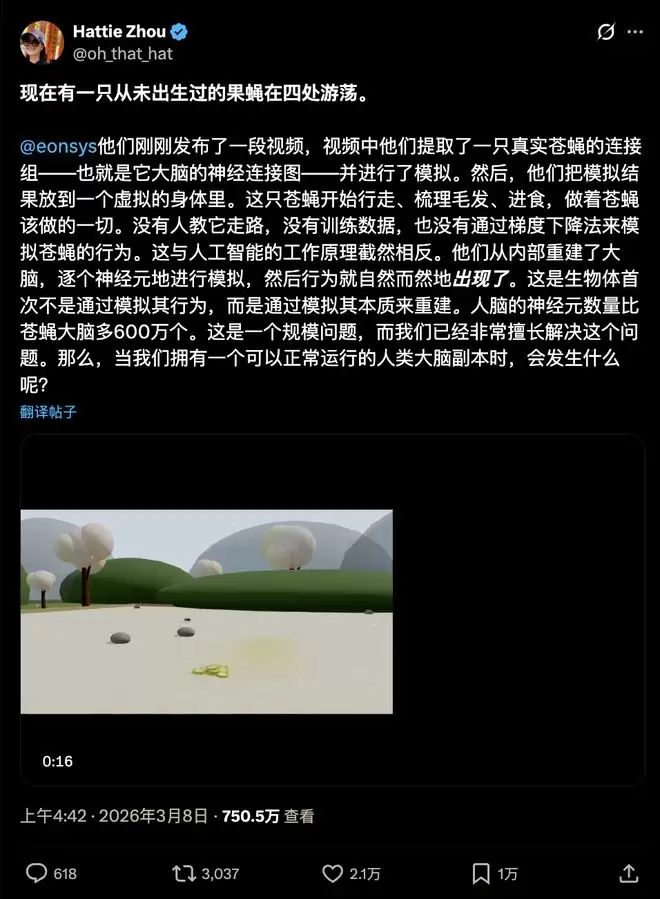 Eon Systems 的这帮疯子,生生把一只成年果蝇的整个大脑,给「赛博化」了!