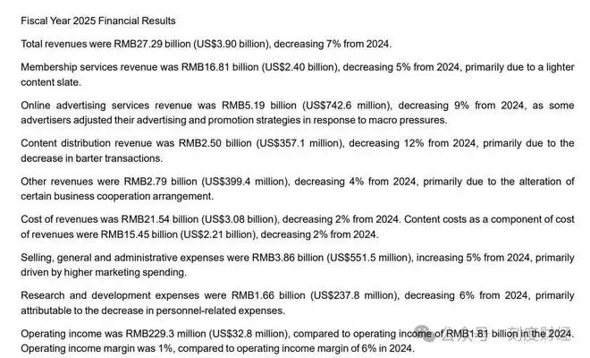 2025年的财报,是爱奇艺长视频基本盘全面萎缩的"溃败证明",营收、利润、会员、广告四大核心维度全线失守,所谓的"IP-centric战略",终究没能掩盖长视频增长引擎彻底熄火的现实。