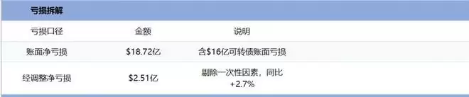亏损的数字看起来确实吓人。全年净亏损18.72亿美元,但这里面包含了16亿美元可转债转股带来的账面亏损。剔除这一因素后,经调整净亏损为2.51亿美元,同比微增2.7%。