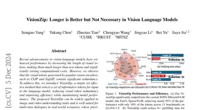 看过科幻电影的朋友可能会有这样的疑问:为什么电影里的AI总是能瞬间处理大量视觉信息,而现实中的AI却需要大量计算资源才能"看懂"一张图片?最近,来自香港中文大学、香港科技大学和哈尔滨工业大学(深圳)的研究团队给出了令人眼前一亮的答案。这项研究发表于2024年12月5日,论文编号为arXiv:2412.04467v1,为视觉语言模型领域带来了突破性进展。