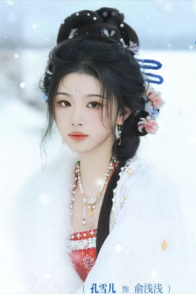 孔雪儿五官明艳精致,眉眼锋利却不凌厉,自带一种 “美而不娇、飒而不冷” 的气质,既有古装美人的古典韵味,又有现代审美里的利落气场,颜值稳定在线,完美适配俞浅浅的形象。