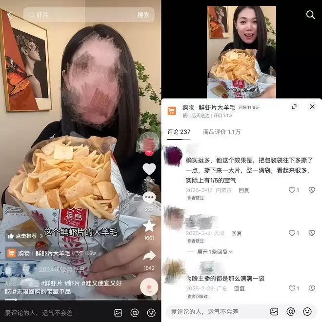 博主带货时会想办法让食品分量看起来比实际多