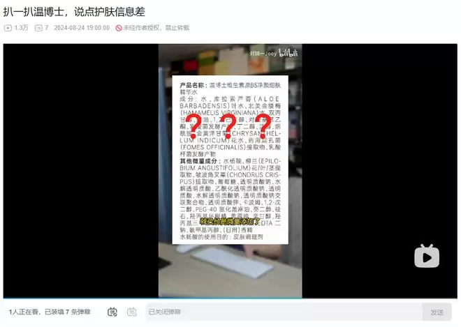 UP主“刘锦一Joey”扒温博士产品成分