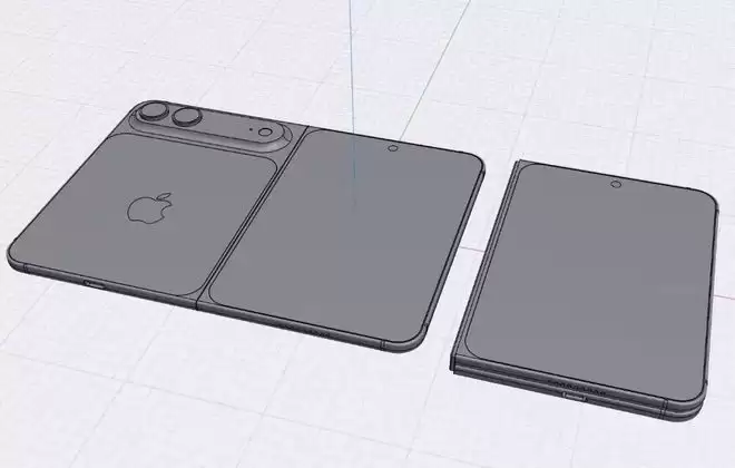 最新的消息中也曝光了这款iPhone折叠屏手机的 3D CAD 渲染图片。