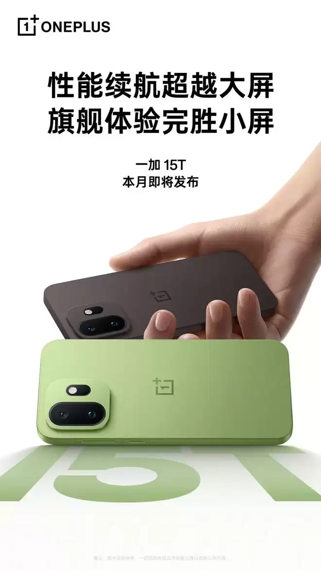今天,一加手机正式官宣,一加15T手机本月即将发布,定位新一代“小屏大魔王”。