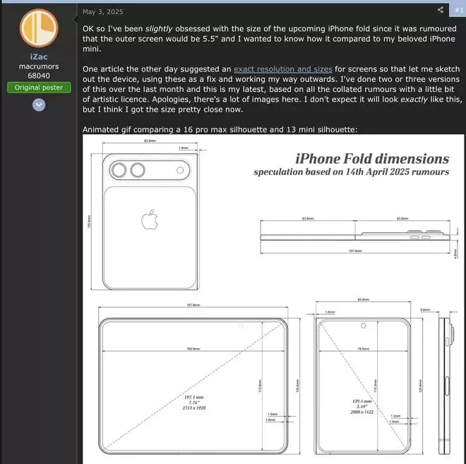 但回顾此前曾被误传为折叠屏 iPhone CAD 尺寸图的那组照片(实际出自网友之手),会发现两者的设计异常相似。