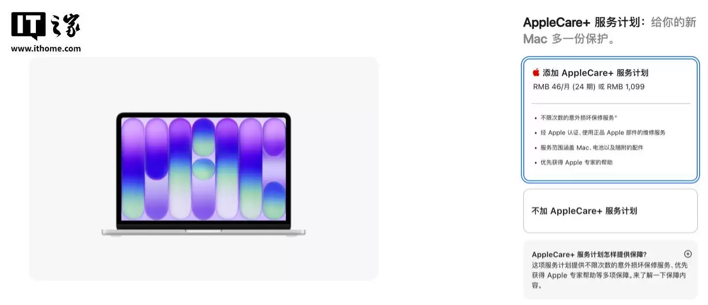 MacBook Neo平价机型的AppleCare+价格揭晓:1099元值不值?
