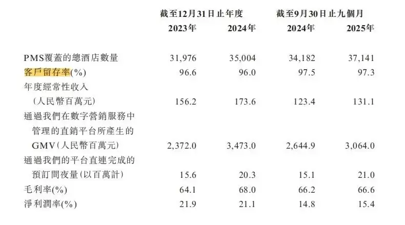 细心者不难发现,绿云软件此次赴港提交的招股书,与2024年申请新三板时递交的材料,存在着不少出入。对比两份材料的核心数据,差异更为明显。首先是关键运营指标之一——客户留存率。在2024年的新三板文件中,该数据为64%;而到了港股招股书里,这个数字却跃升至96.6%。