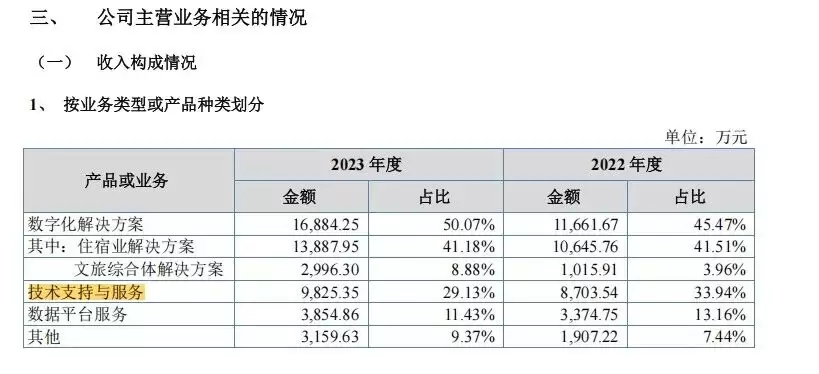 这很可能是因为绿云软件将新三板文件里的“数字化解决方案”与“技术支持与服务”两项业务,全部整合纳入了港股招股书中的“住宿业数字化解决方案”一项。