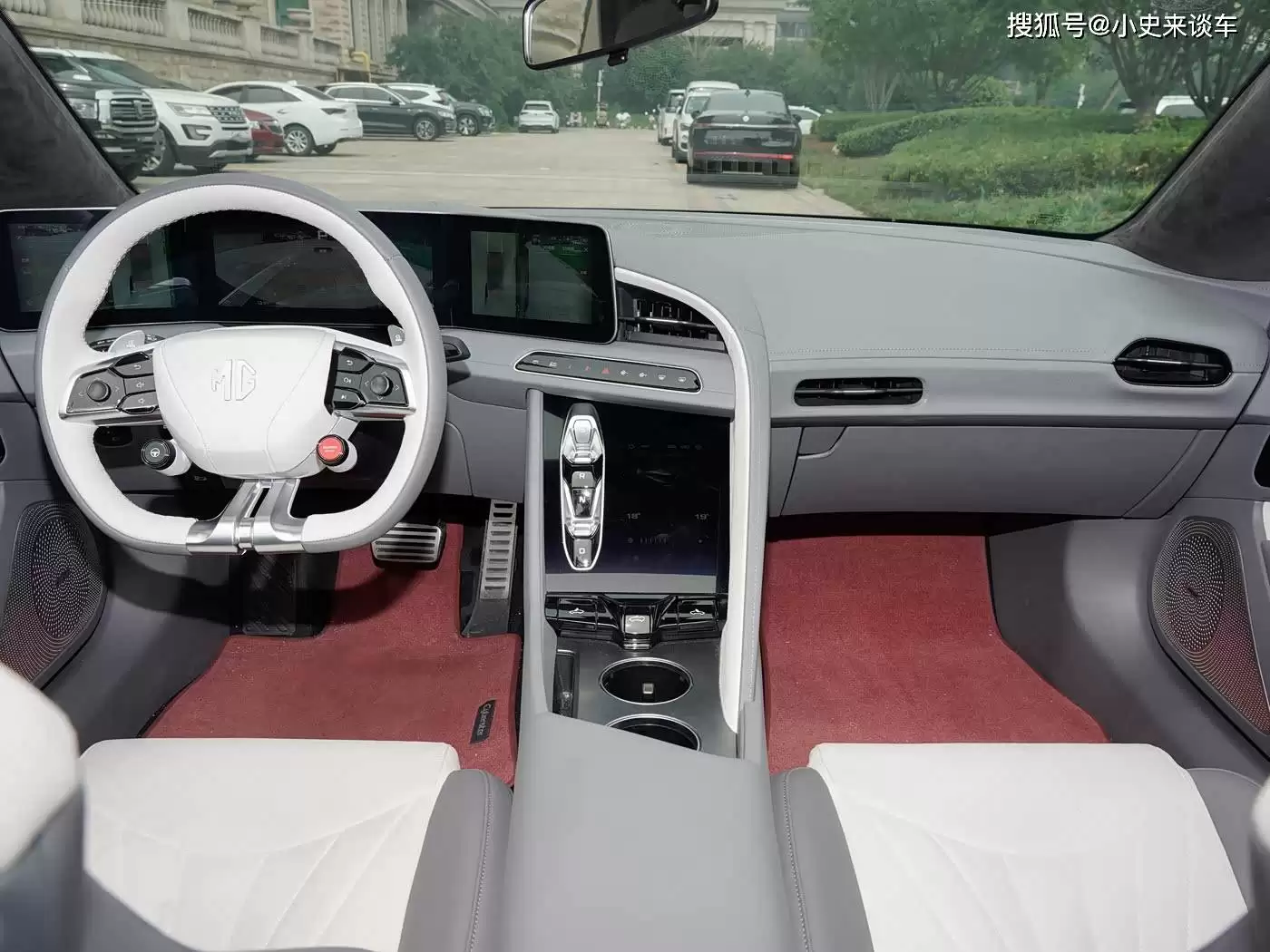 车尾部分同样是设计亮点纷呈。整体层次感极强,上提的线条营造出浓郁的战斗气息。后备厢顶部的小鸭尾扰流板,不仅提升了视觉上的运动效果,还能有效优化尾部气流,增强车辆高速行驶时的稳定性。贯穿式熏黑尾灯采用独特的箭形设计,点亮后如同赤翼展翅,既致敬了MG品牌的百年赛道血统,又拥有出色的辨识度。