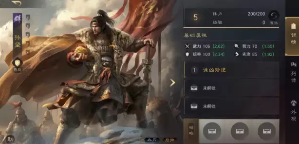 “讨逆”战法与孙坚高度契合,提供7%兵刃伤害加成,并额外增加凶逆层数获取效率,显著压缩易伤叠满周期。需要注意的是,凶逆叠加成功率受双方全属性差影响,建议搭配田丰(提升属性压制)、左慈(稳定增益+生存保障)等辅助型武将,以提升机制稳定性。其缘分需三人同场激活,虽与孙策存在联动,但与其他武将无通用缘分,阵容构建需提前规划。