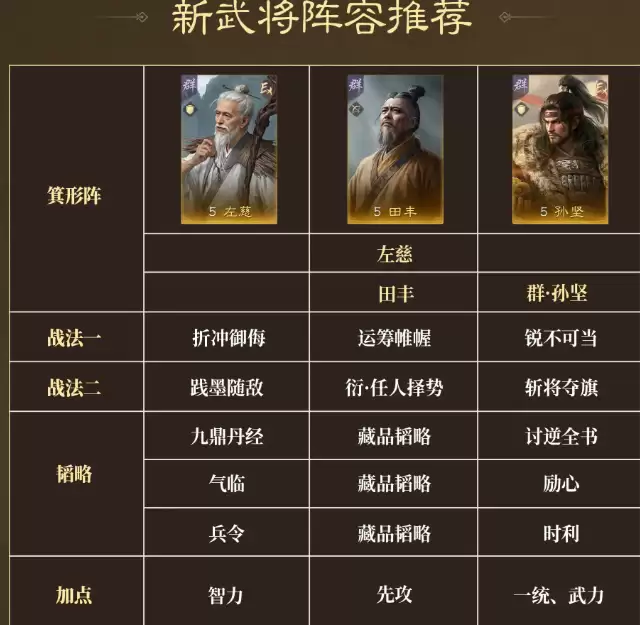 《三国:谋定天下》全新赛季“兴汉讨逆”已正式上线。本次更新不仅带来了策略深度更高的战场环境,还同步推出了两位机制鲜明的新武将——孙坚、木鹿,以及两套高适配性的主动战法——“恩威并行”与“未雨绸缪”。为帮助玩家快速掌握核心机制、构建高效阵容,本文将围绕新武将的兵种定位、技能逻辑、层数叠加规则、缘分触发条件及实战搭配逻辑展开系统解析,同时兼顾输出节奏、减伤体系与克制关系,旨在助力玩家在新赛季中抢占先机。