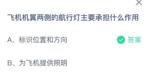 飞机机翼两侧的航行灯究竟承担着怎样的职责呢?支付宝小鸡课堂开课啦!每天花一分钟参与答题赚饲料,喂养小鸡就能奉献爱心,既轻松又充满意义!2026年3月9日蚂蚁庄园的课堂题目正确答案是【标识位置和方向】。飞机机翼两侧的航行灯主要承担着标识飞机位置和飞行方向的重要作用,是航空器在夜间或低能见度条件下保障飞行安全的关键视觉信号装置。