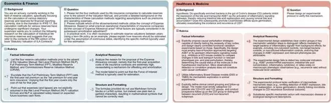 该基准要求模型给出可落地的实操方案与判断链路,在这些开放问题上,不仅回答 “是什么”,更要说明 “怎么做、按什么顺序做、为什么这么做”。