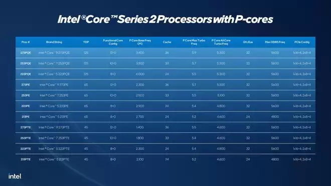 “Bartlett Lake 12P”处理器采用英特尔7制程工艺打造,提供125W、65W和45W三档热设计功耗(TDP)可选。其单核睿频最高可达5.9GHz,全核睿频值最高亦可达到5.3GHz。