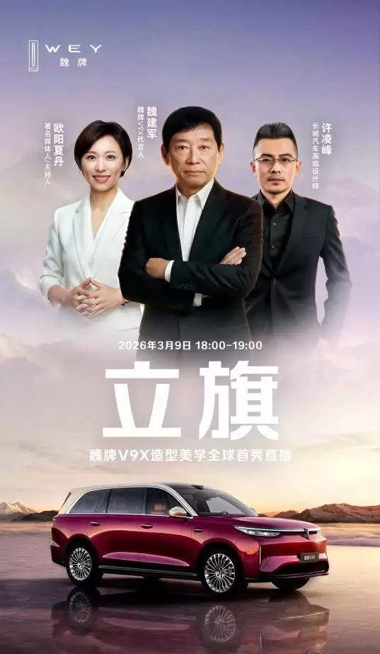 一场以“立旗”为主题的直播活动于3月9日在保定拉开序幕,主角是即将上市的魏牌V9X——这款被定义为“AI豪华六座旗舰”的新车。这场直播不仅是一场造型美学的全球首秀,更是对中国汽车文化自信的深度诠释。长城汽车创始人魏建军首次以代言人身份亮相,与媒体人欧阳夏丹、长城汽车高级设计师许凌峰展开对话,从保定直隶总督署门前的大旗杆精神图腾切入,系统解读了魏牌V9X设计中蕴藏的东方经典美学。