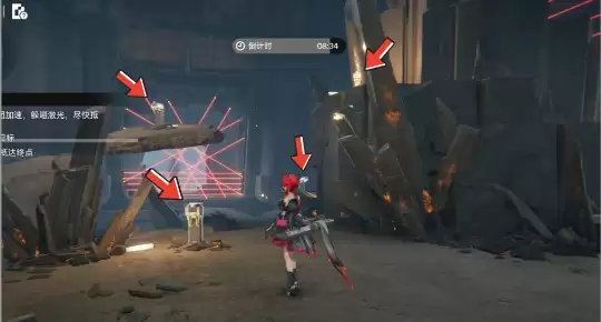 终点处需要启动全部四个机关,并关闭拦截射线。