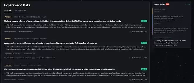 主页右下角有一个实时滚动的窗口,正在「直播」 AI 流水线的处理进度。每当新的论文实验数据被解析完成,就会立刻出现在右侧的数据流里,一条条刷新。