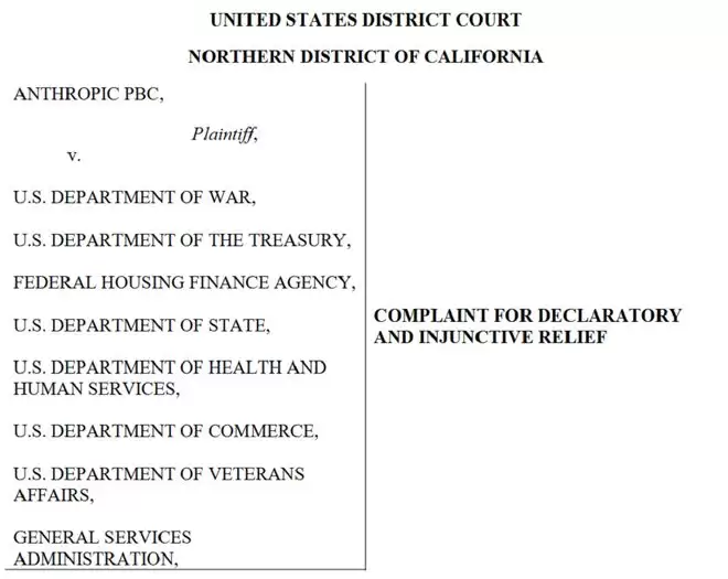 智东西3月10日报道,今天,美国AI独角兽Anthropic正式起诉包括美国战争部、财政部、商务部在内的18个美国联邦政府机构和包括美国战争部部长在内的18位美国高官,要求法官撤销美国战争部将Anthropic认定为“国家安全供应链风险”的决定,并阻止其他联邦机构执行该决定。