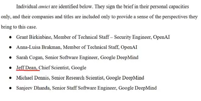 来自OpenAI和谷歌的37名研究人员和工程师于今天提交了一份支持Anthropic的“法庭之友意见书”,谷歌首席科学家Jeff Dean是这份意见书的署名者之一。