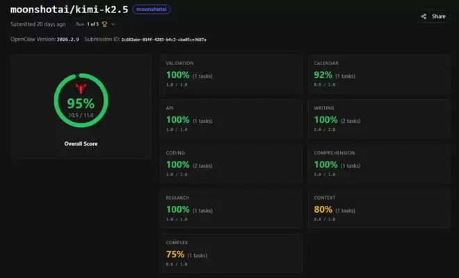 位列第三的Kimi K2.5拿下写作、编程、研究等7项满分,不过同样在上下文记忆检索任务中踩坑。看来,对目前的大模型而言,长上下文中的信息捕捉能力仍是有待提升的短板。