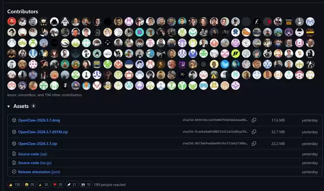 OpenClaw项目在3月8日进行的一次重磅更新,发布了300多条修复、27项变更和1项重大变更。贡献者列表显示,一共有194人参与,这对于一个开源项目来说已经很多了。