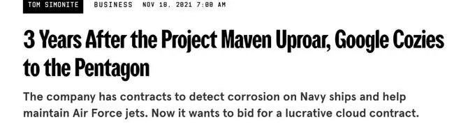 2018年,谷歌员工曾强烈反对参与Project Maven,最终的结果,就是谷歌退出项目。