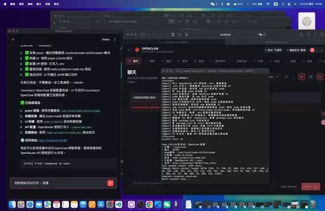 注: 使用 GenericAgent 可在极少提示下在 mac 系统自主实现 pnpm 安装, 依赖安装, gateway 配置等步骤, 成功安装 Openclaw 框架, 并打开网页端