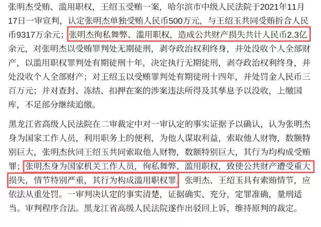 事实上,张明杰案的终审结果确实抹除了贪污罪名,但受贿罪板上钉钉。