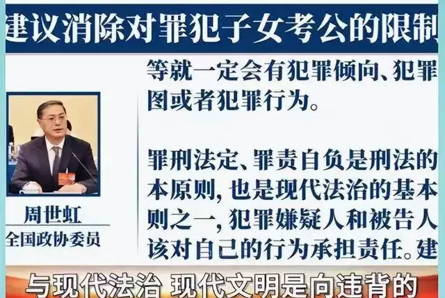 委员周世虹提议,消除对罪犯子女考公的限制。