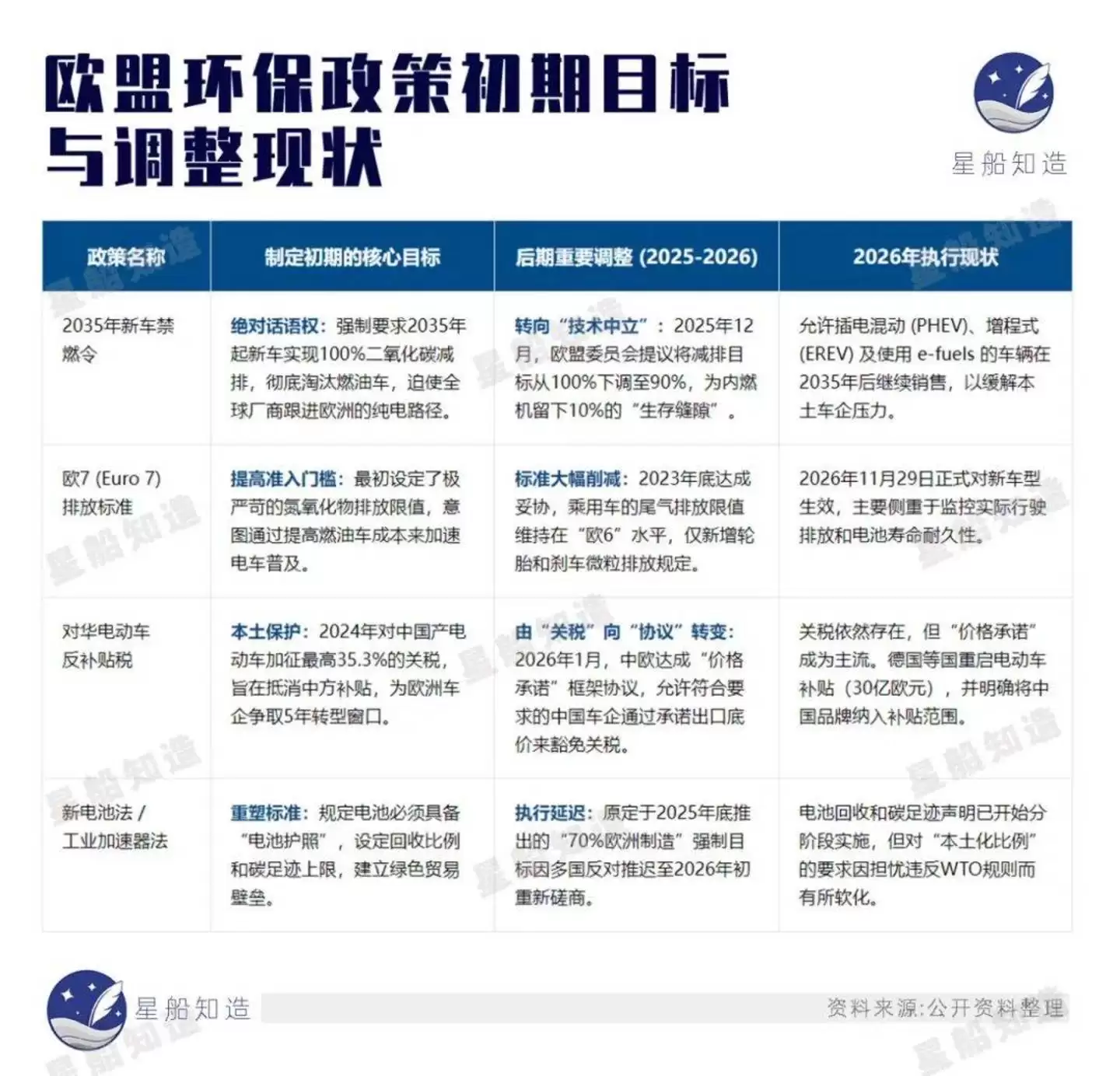在此思路上,欧盟激进地推出一连串政策组合拳。《星船知造》大致统计如下