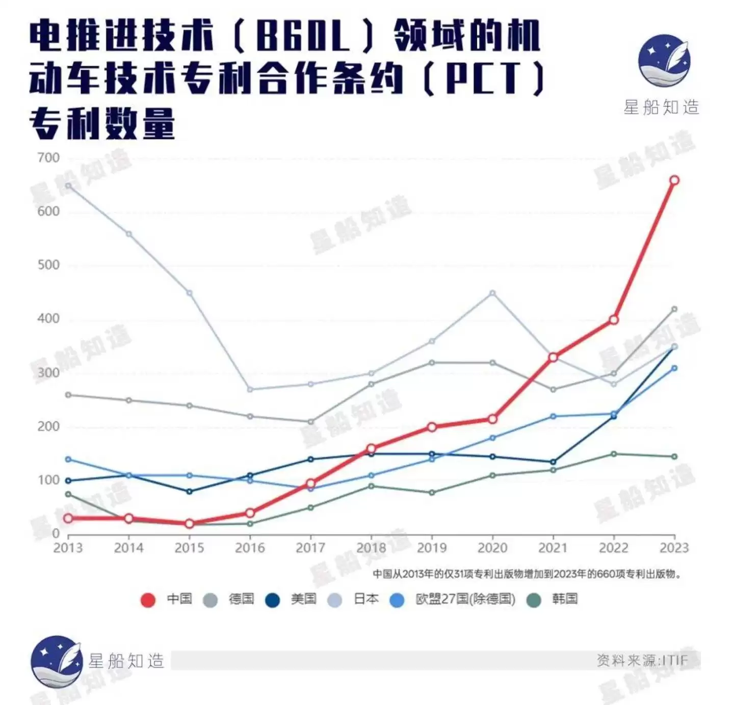 电推进技术(B60L)领域的机动车技术专利合作条约(PCT)专利数量。见下图