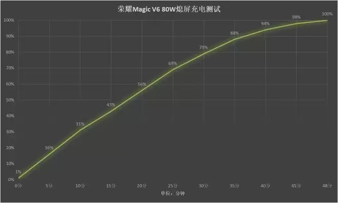 快充方面,荣耀Magic V6从前代的66W有线快充升级至80W快充,实测从1%电量开始熄屏充电,仅需48分钟即可充至100%,相较于前代的55分钟节省了7分钟。更大的电池容量搭配更快的充电速度,荣耀Magic V6创下了大折叠手机的续航新标杆,堪称2026年续航最强折叠屏手机。