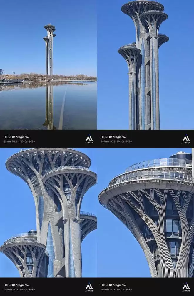 来看一组实际变焦样张:数百米外的奥林匹克塔,楼顶的玻璃乃至表面纹理,都能清晰呈现。成像效果自然细腻,无明显AI算法痕迹,观感堪比光学变焦。