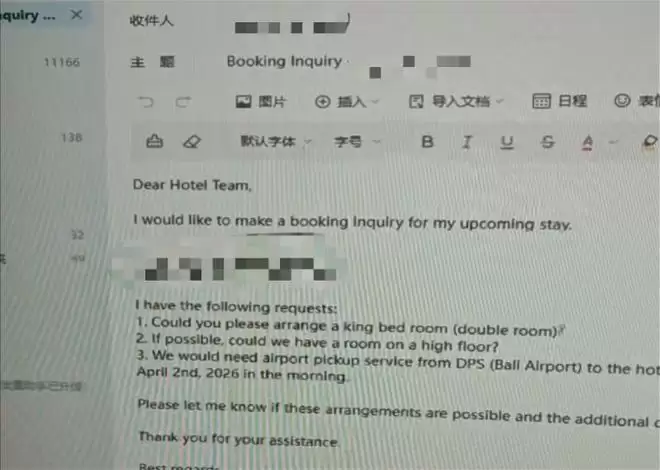 谈到实际应用场景,方先生最近刚完成一个典型的“养虾”任务。他刚订好月底将入住的巴厘岛酒店,随后他给“龙虾”发出指令,要求它发邮件给酒店,沟通安排接机和房间要求。“本来要自己写邮件,现在直接告诉OpenClaw相关要求,它帮我发送,有点像私人助理。”