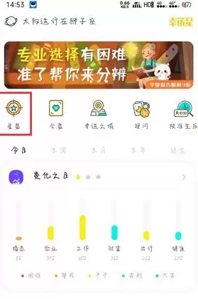 首先,打开手机中的客户端,在完善好出生日期、地址等个人信息后,回到【首页】,点击顶部的【星盘】入口。
