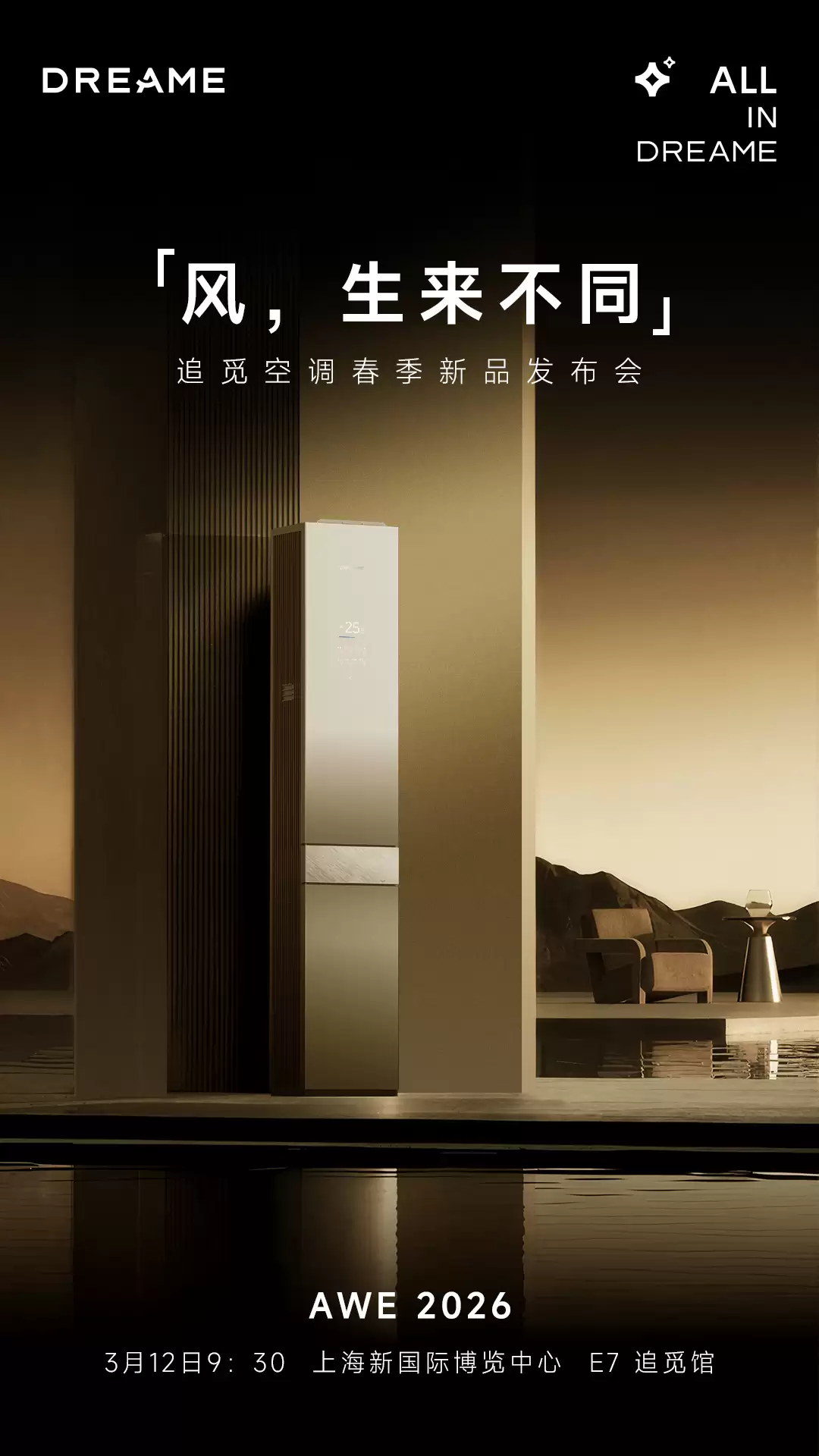 作为全球三大家电及消费电子展之一,2026年中国家电及消费电子博览会(AWE 2026)将于3月12日在上海新国际博览中心盛大开幕,全球高端科技品牌追觅科技以“追觅宇宙 ALL IN DREAME”为主题震撼亮相。开幕首日,追觅空调春季新品发布会暨经销商签约仪式将如期举行,正式推出旗下首款全嵌入式柜机空调D60,这不仅是追觅宇宙场景生态的核心亮点产品之一,更将凭借全嵌入式艺术美学和全球顶尖的双机械臂驭风科技重塑行业格局,重新定义未来居家空气新体验。