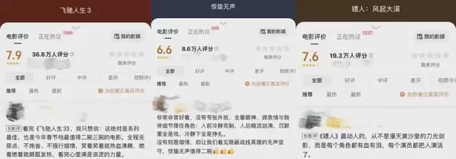 对于越来越挑剔的观众而言,“热血+IP”的公式虽然能保障作品在春节档的票房优势,却不能阻止热度和观影人数的下降,抖音影视榜上未达8分的观众评分也清晰的反馈出,三个头部影片都存在着的难以忽视的瑕疵。