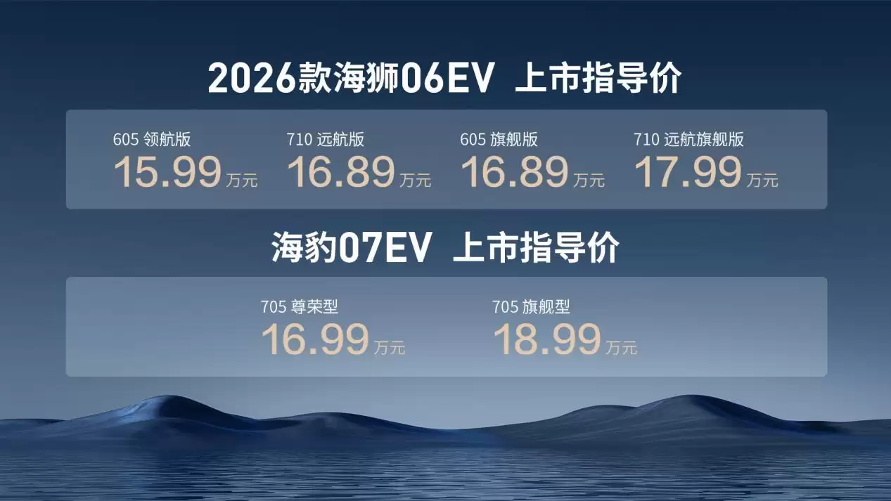 第二代刀片电池和兆瓦级闪充技术亮相的同时,2026款海狮06EV直接宣布上市即交付,价格锚定在15.99万-17.99万元。没有预定周期,没有首批限量,也没有“敬请期待”。这种做法在当下的新能源市场,反倒显得有些陌生。