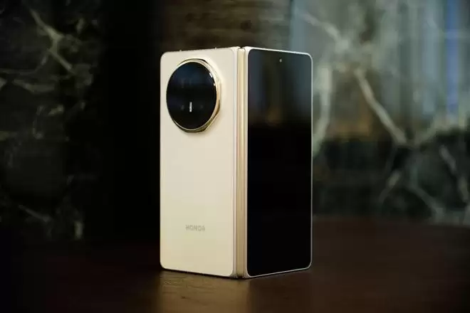设计上,Magic V6基本保持了前代的逻辑,背部依然是八边形的居中大Deco。中框的小倒角设计挺有巧思,即便它做了直面屏设计,也不至于太硌手。不过,背部这个超大Deco会让Magic V6没办法平放在桌面上,戴上随机附赠的手机壳会稍微改善一些。