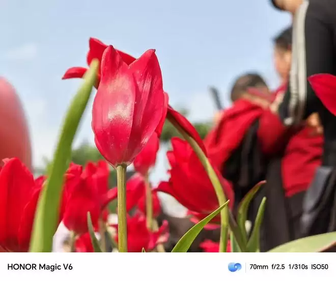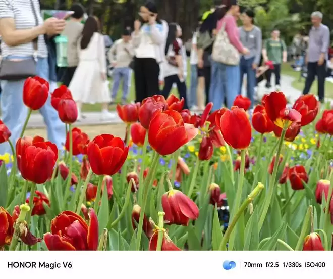 这颗6400万像素潜望长焦,在光线充足的情况下,对焦速度还是非常迅速,基本上是指哪儿打哪儿。在路人比较多的场景下,还是能精准抓住主体,比如这一丛郁金香,随手按快门就行了。