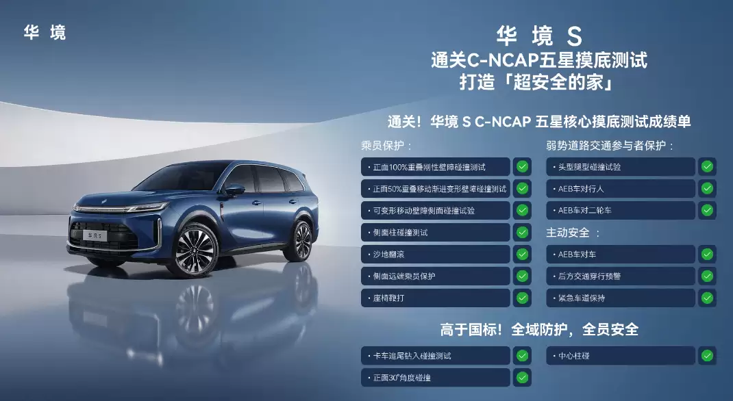 中汽中心最新一轮C-NCAP新版规程测试结果揭晓,上汽通用五菱与华为强强联合打造的首款旗舰车型华境S,凭借卓越的安全性能脱颖而出。测试全面覆盖了乘员保护、主动安全与弱势道路使用者保护三大核心领域,华境S在多项严苛碰撞场景中的表现均堪称亮眼。
