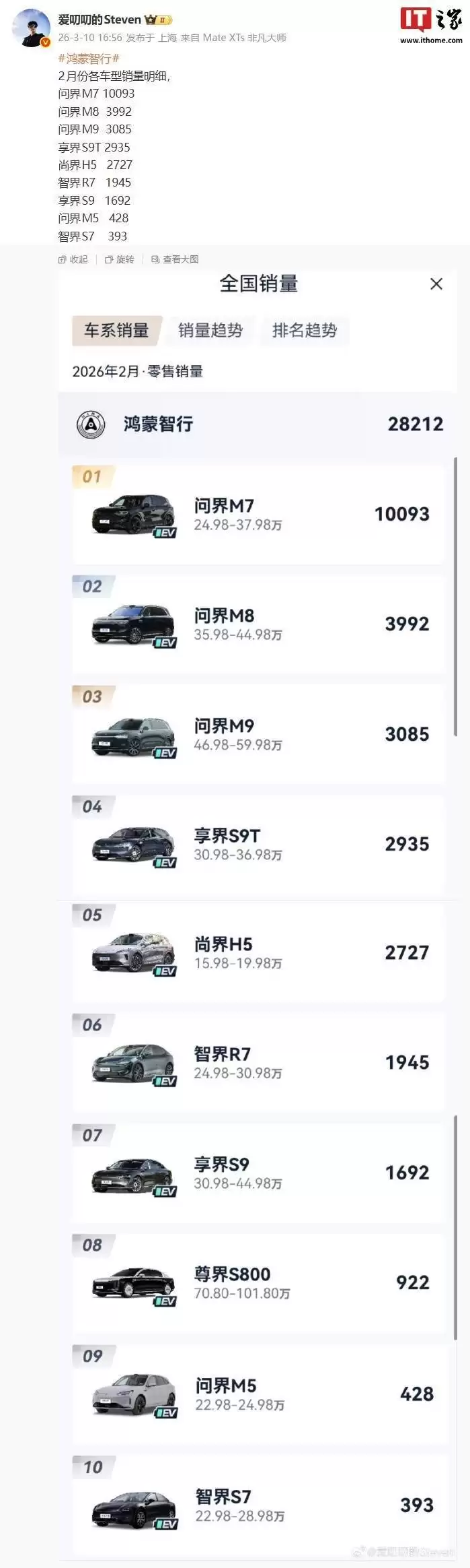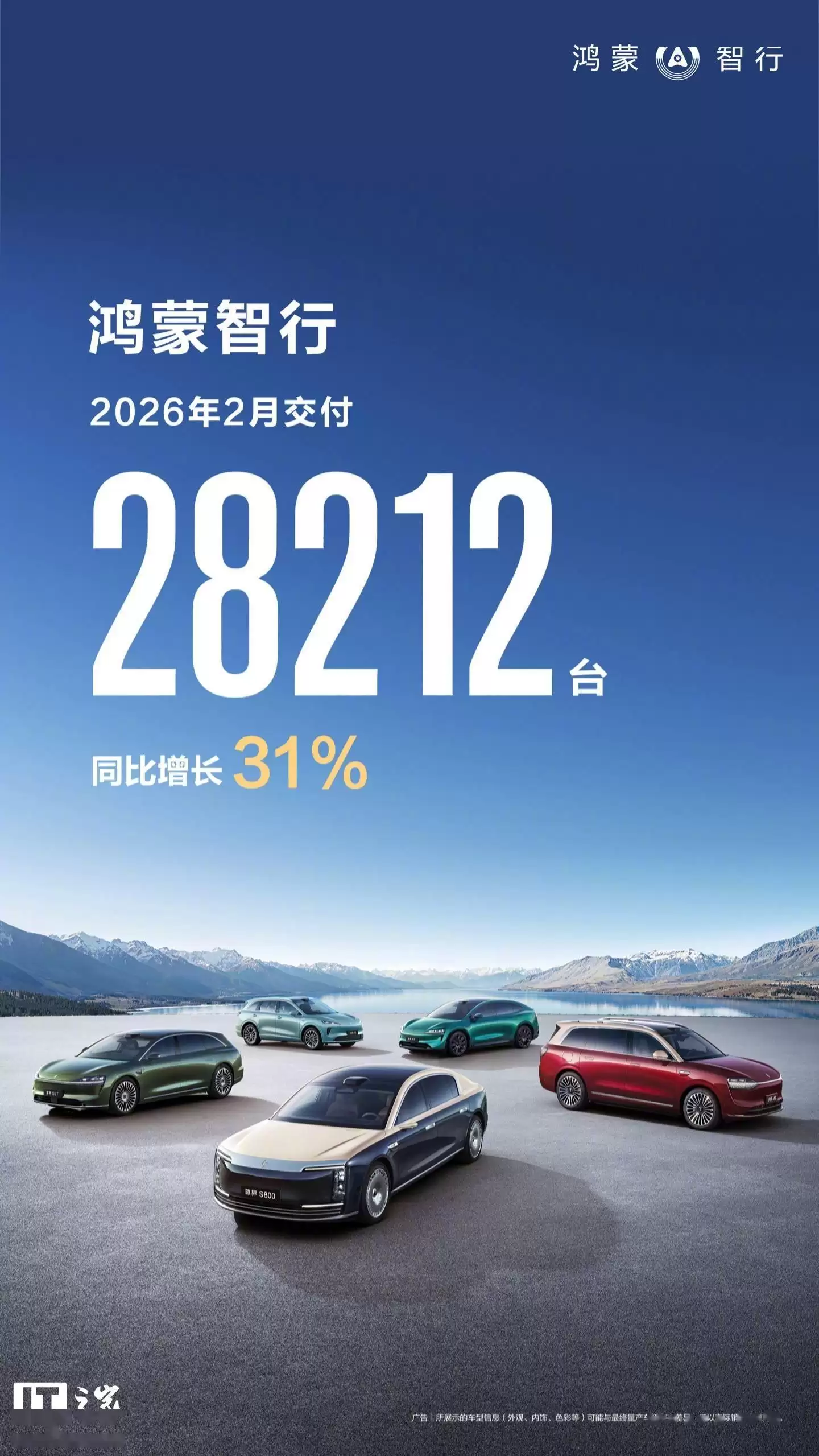 此前,鸿蒙智行曾对外公布,2026年2月整体交付量达到28212辆,同比增长31%,历史累计交付量更是突破了128.2万辆的大关。这一成绩不仅彰显了鸿蒙智行在新能源汽车市场的强劲势头,也为其后续发展奠定了坚实基础。值得一提的是,享界汽车也在次日公布了其2月交付数据,达到4627台,进一步丰富了市场信息。