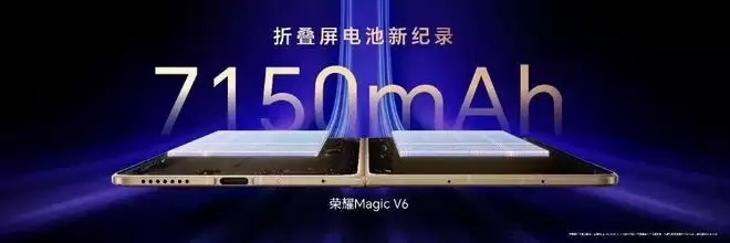 荣耀Magic V6核心搭载满血八核第五代骁龙8至尊版旗舰芯片。内置7150mAh新一代青海湖刀片电池,硅含量达到32%,2倍于行业平均值,能量密度高至985Wh/L。