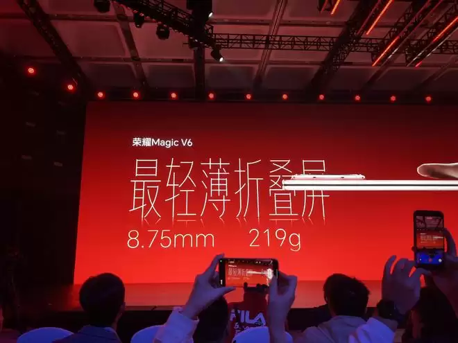 荣耀在发布会上给出的数据是,Magic V6 折叠厚度约 8.75mm(展开厚度 4mm),重量 219g 左右。从参数上看,这个厚度已经接近不少直板旗舰: