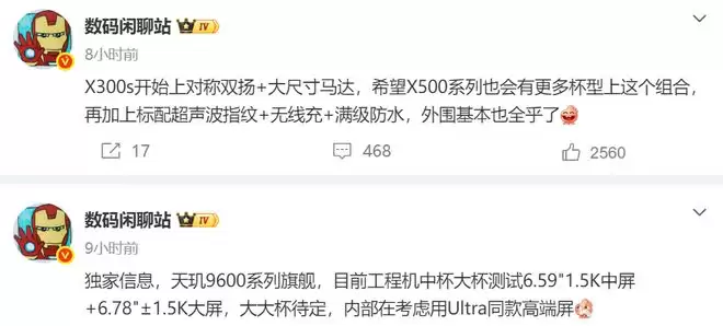 而且外围配置这次两家都拉满了,vivo X500系列会有更多杯型上对称双扬+大尺寸马达这个组合,再加上标配超声波指纹+无线充+满级防水,外围基本全乎了。